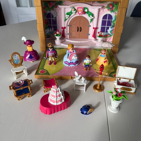 Playmobil cupcake café legesæt. Sættet består af et lille café-miljø med diske, borde, skilt og tilbehør som kager og drikkevarer samt flere figurer. Indretningen er i lyserøde og pastelfarver med tryk af cupcake-tema og detaljer som planter og glasmontrer til kager. Velegnet til rolleleg og udvidelse af andre Playmobil-sæt i samme serie.