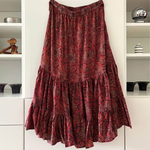 Sissel Edelbo flæsenederdel nederdel med flæser, str. 38, Sissel Edelbo nederdel str. S/M Lola midi skirt , Multifarvet rød taupe mm , Silke silkemix, Ubrugt, Sissel Edelbo nederdel flæsenederdel