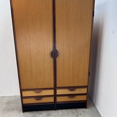 Stort arkiv skab med jalousi låger i fineret teak ,indvendig med hyldeindretning