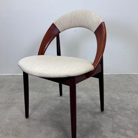 Arne Hovmand Olsen spisebords stol i massiv teak og lys uld