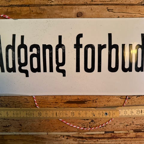 Super funky gammelt retroskilt, brugt når der skulle springes med dynamit. Originalt, derfor også tydelige brugsspor. Lampe på toppen (virker ikke på nuværende tidspunkt)