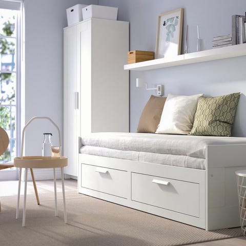 Perfect for a guest room, small apartment, or teenager’s room. Can be used as a single or double bed or easily styled as a sofa during the day.