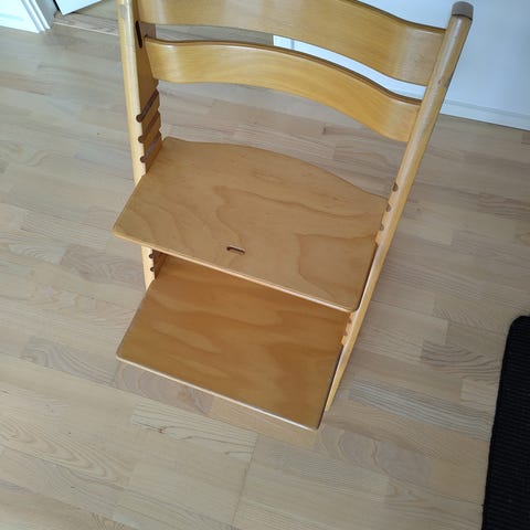 Brugt stol - solid og fungerer fint med støtter der sikrer stolen ikke vælter.