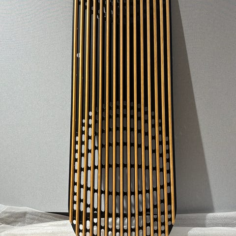 Beolab 50 med fronte i sort stof og sider i egetræ. Virkelig flot højttalersæt.