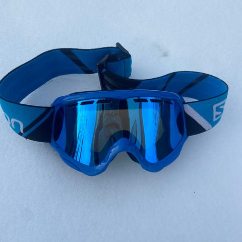 Junior Salomon skibrille i blå farve. Brillen har bred elastikrem med Salomon-logo og justering, så den kan tilpasses hovedstørrelse eller hjelm. Passer ca. 7- 12 år.Rammen er polstret med skum for øget komfort mod ansigtet og ventilation for dugfrit synsfelt. Linsen er blåtonet og dækker et stort synsfelt. Velegnet til brug på ski eller snowboard.