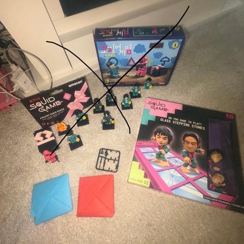 Klassisk koreansk spil gonggi (lidt som jacks), hvor man kaster og griber brikker i forskellige runder. Spillet er kendt fra Squid games.