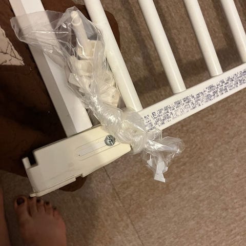 Gitteret er på foto 89cm. Bred og kan forlænges med ca. 28cm.