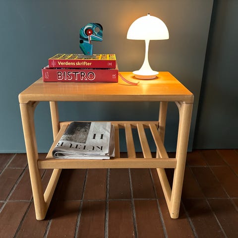 Sidebordet er i bøgetræ. Det kan blive meget fint, hvis det får en slibning. Fra Haslev møbelsnedker. Kan hente i Århus C.