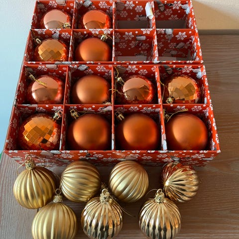 Julekugler grise hjerter handske solgt sok, 10 kugler papmache kr 60,-