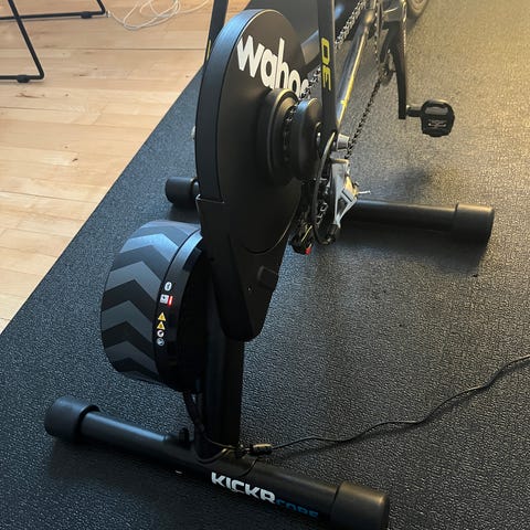 Velfungerende Kickr Core med ca. 4-5 år på bagen. Sælges inklusiv monteret Zwift Cog, så du kan montere enhver cykel på den samt Zwift Click, så man kan skifte virtuelle gear i Zwift. Der medfølger også 3d-printede rocker feet, så man kan smide nogle tennisbolde under hometraineren og få en markant mere komfortabel oplevelse.