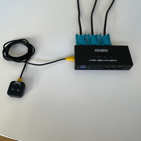 Med en KVM Switch kan du styre flere computere (i dette tilfælde op til 4) med den samme keyboard, mus og skærm.