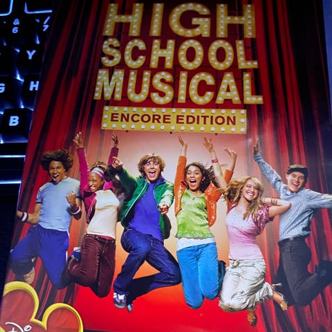 Disney High School Musical Encore Edition dvd. Udgave af filmen High School Musical i Encore Edition-version på dvd. Forsiden viser hovedpersonerne fra filmen foran et teatertæppe. Velegnet til afspilning på dvd-afspillere, der understøtter standard dvd-format.