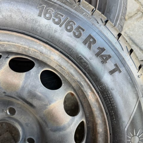 165/70R13 79T brugte Kelly sommerdæk på fælge fra Toyota Starlet P9 1998 sælges.