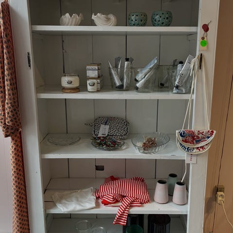 Skabet har tydelig patina og brugsspor, som giver det charme og karakter.