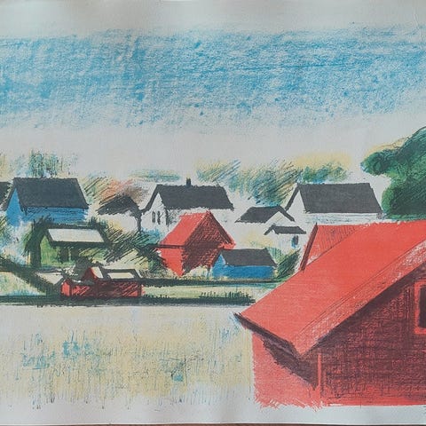Litografi fra 1939 af professor på det Kongelige danske Kunstakademi Søren Hjort Nielsen. Mål 36 x 47.