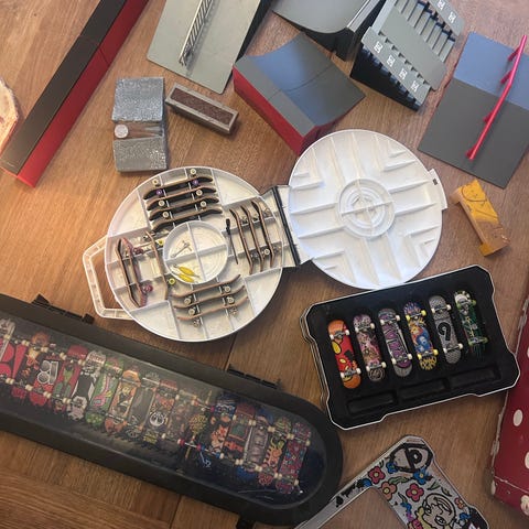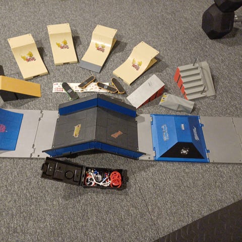 Tech Deck Mega Half Pipe fingerboard rampe sæt. Indeholder modulopbygget halfpipe-rampe med flere dele, der kan samles på forskellige måder til fingerboards. Sættet er designet til brug med Tech Deck fingerboards og lignende små skateboards. Egnet til indendørs leg og øvelse af tricks i miniatureformat.