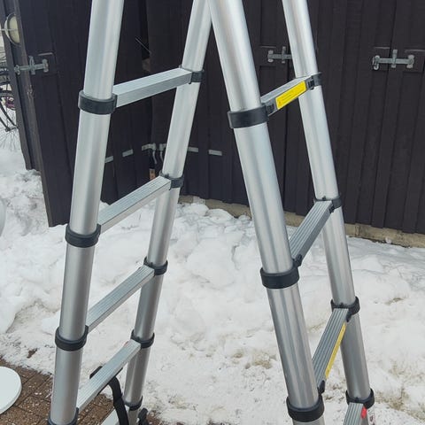 Workmann Teleskopstige i aluminium. Stigen kan trækkes ud trin for trin til fuld arbejdshøjde og skubbes sammen igen, så den fylder minimalt ved opbevaring og transport. Egnet til brug ved arbejde i hjemmet, på værksted eller mindre håndværksopgaver, hvor der er behov for en kompakt og justerbar stige.