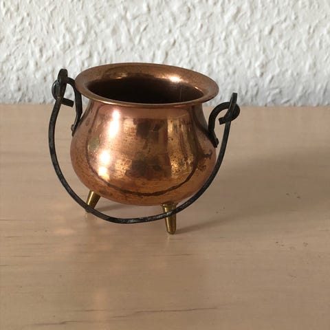 Lille kobbergryde med håndtag 8,5x5 cm pris 25.-