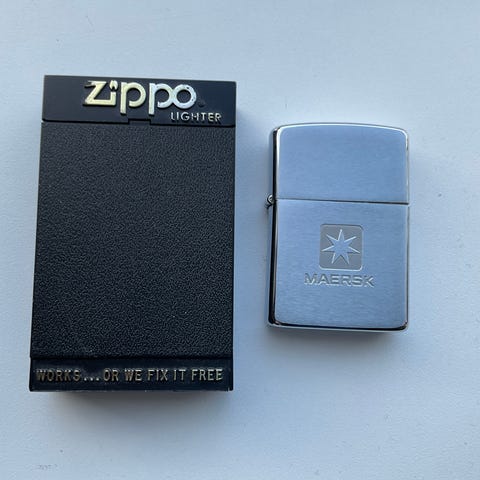 Zippo lighter med Statsministeriets logo og Statsministerens underskrift