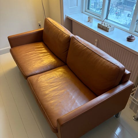 Lækker 3 personers klassisk designsofa fra Mogens Hansen. Sofaen er monteret med duntop sædeindlæg, som giver den helt rigtige komfort og det rigtige look. Nypris 38.000.