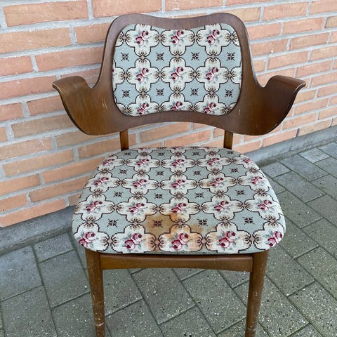 Fin Hans Olesen armstol, velholdt i fineren, en enkel skrue skak skrues fast