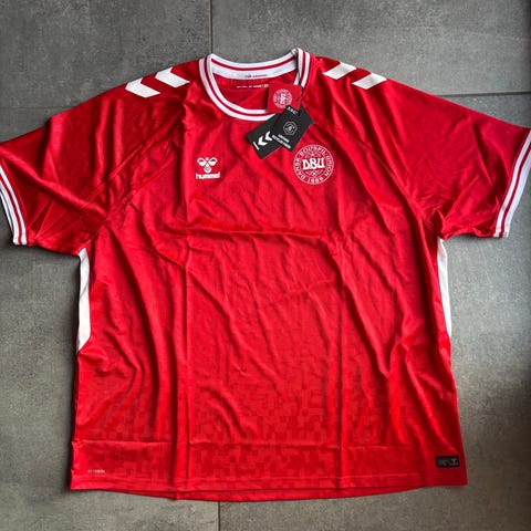 Hummel Danmark DBU fodboldtrøje i unisex str. M. Trøjen er rød med hvide ærmer og Hummels karakteristiske vinkler på skuldrene. På brystet er der DBU-logo samt Hummel-logo. Indvendigt i kraven står teksten "For Danmark" og "Der er et yndigt land". Egnet til fodbold og anden sport eller som supportertrøje. Materialet er let og åndbart syntetisk stof, der er velegnet til fysisk aktivitet,helt ny,har aldrig været brugt,ligger bare i mit skab,så nu skal den videre🇩🇰⚽️