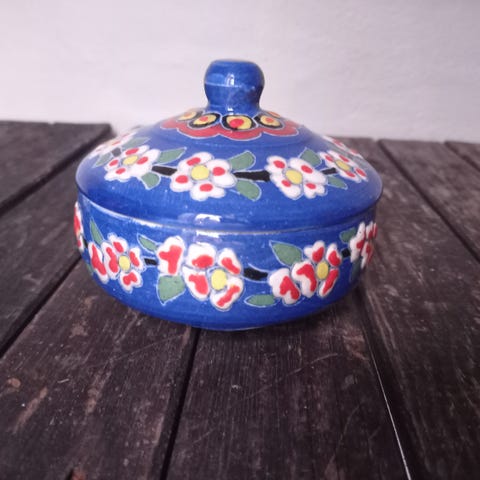 Keramik skål med låg og hang, blomstermotiv, 26x7 cm pris 25.-