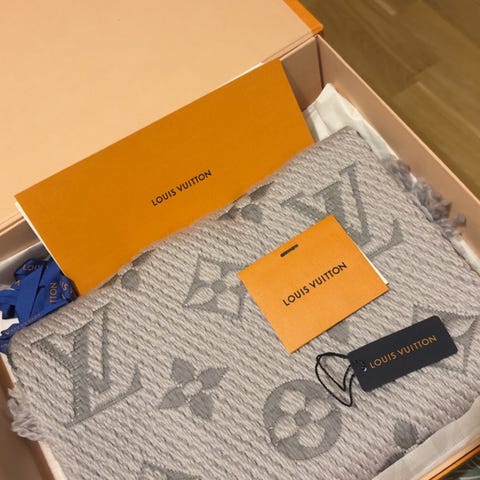 Stilrent LV halstørklæde i grå tern med logo-detalje. Lækkert og varmt – passer til det meste.