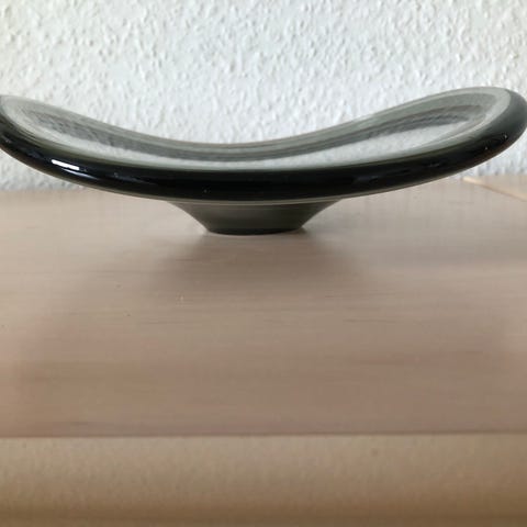 Glad fad i Holmegård design ikke stemplet, i røg farvet glas, D 32 cm pris 35.-