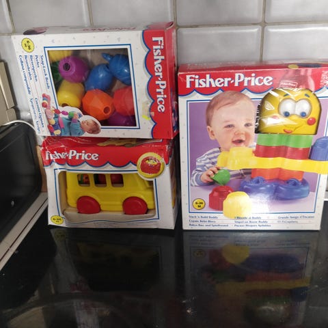 Til den første og gode indlæring. Værktøjskasse med håndværktøj, lægetaske med remedier til undersøgelse, kugleramme og kasse med “de første bøger”.