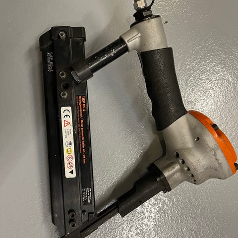 TJEP BC 60 beslagssømpistol til brug med coil-søm i længder fra 35 til 60 mm. Vinkel 15°. Luftdrevet værktøj med magasin til tromlesøm og gummibelagt håndtag for bedre greb. Egnet til montage af beslag og lignende tømrer- og snedkeropgaver, hvor der kræves kraftig fastgørelse med søm i coil-magasin.