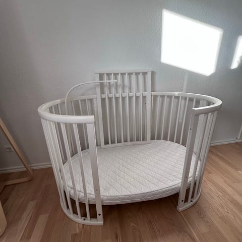 Stokke tremmeseng hvid
