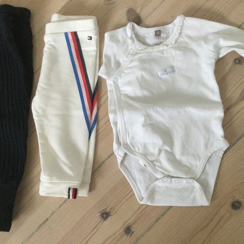 Bluser, bodystocking Str. 86 - 4 T-Shirts ( 2 med lange ærmer og 2 med korte ærmer) samt 1 bodystocking med lange ærmer sælges samlet for 30 kr.