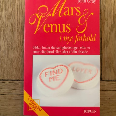 John Gray Mars og Venus i nye forhold bog. Dansk udgave udgivet på forlaget Borgen som en del af Valbygård-serien. Paperback med rød forside. Bogen handler om parforhold og kærlighedsrelationer og beskriver temaer som at genfinde kærligheden efter brud eller tab af en partner. Velegnet til læsere, der er interesserede i psykologi, parforhold og personlig udvikling.