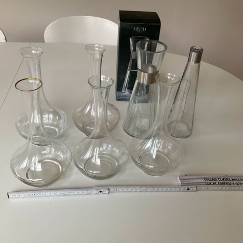 5 stk. Vin/vand Holmegårds karafler. Fremstår som nye, ingen skår. 26 cm høje.