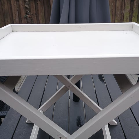 Hvidmalet Bakkebord, X, Antik hvidmalet bakkebord med originale hjul.