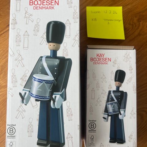 Kay Bojesens ikoniske gardere har gennem årtier været et symbol på dansk design og tradition. Den Limited Edition Fanebærer Garder fra 2024 er skabt som en hyldest til tronskiftet i 2024 og fås i både mini (13,5 cm) og lille (29,5 cm).