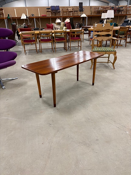 Flot læder sofa, i flot cognac farve, stel af egetræ med lamel sider (gavle).