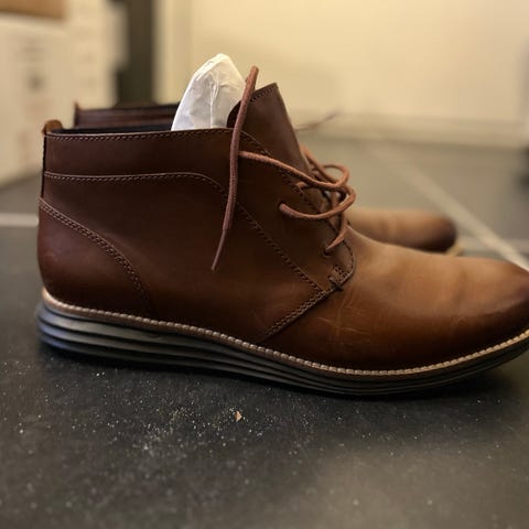 Lækre Cole Haan pebble grain støvle sælges. Str. 46. Goodyear weltet sål. Et par i dark moss green, og et par i chestnut tan. De er brugte lidt og i rigtig god stand. 250 kr/ par. 400 for begge.