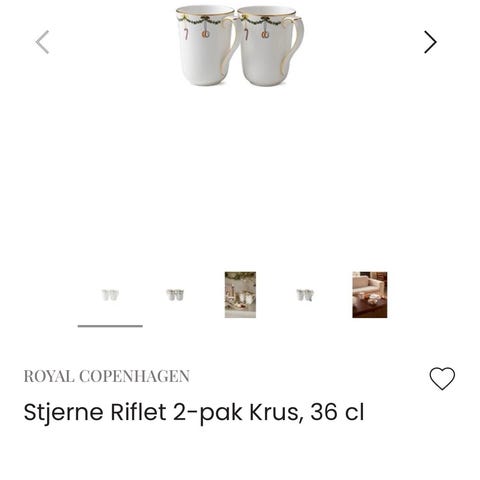 2 stk stjerneriflet jul krus fra Royal copenhagen. De er ikke brugt og kun taget ud af æsken for at tage billeder.