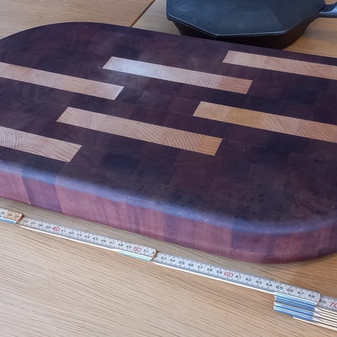 Almindelige brugstegn i form af små ridser efter osteknivene. Skærebrættet er dog nyslebet og olieret og fremstår derfor rigtig flot.
