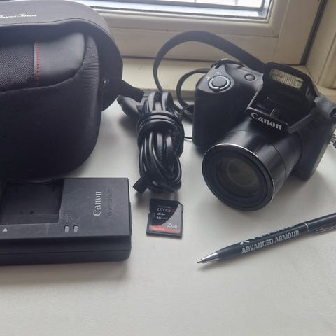Inkl. emballage, batteri, oplader, strømkabel, USB-kabel, rem og etui