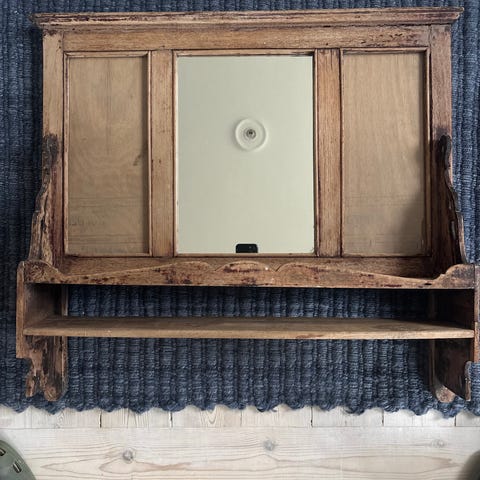 Astro-vægspejl med motiv af sol, stjerner og måne. Spejlet er rundt og indrammet af en gul sol med stråler samt en halvmåne med stjerner. Fronten er dekoreret i flere farver, bagsiden har ophæng til vægmontering. Velegnet som dekorativt spejl i f.eks. stue, entre eller børneværelse.