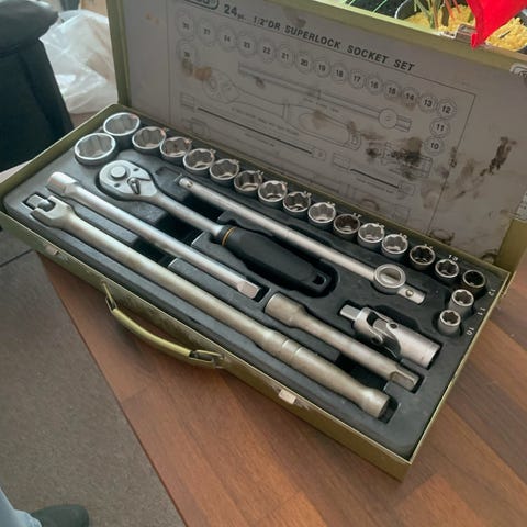 Bahco S138 topnøglesæt med 138 dele. Sættet leveres i en robust plastkuffert med håndtag og låse. Indeholder forskellige topnøgler, skraldenøgler, bits og tilbehør i flere størrelser, egnet til almindelige mekaniske og tekniske opgaver. Oversigt over indhold og dimensioner er angivet på bagsiden af kufferten for nemt overblik under brug og opbevaring.