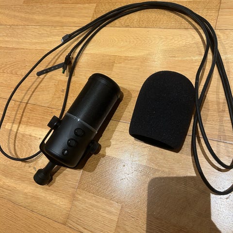 SteelSeries Alias gaming mikrofon med USB-C tilslutning. Mikrofonen er designet til brug ved computer, fx til gaming, streaming, podcast eller online møder. Enheden står på en rund bordfod og har indbyggede betjeningsknapper på fronten samt LED-indikatorer for niveaumåling. Mikrofonen leveres i sort design og er beregnet til stationær placering på skrivebord.