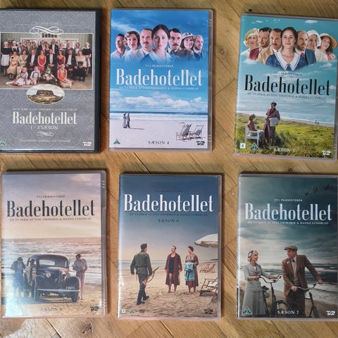 Boks med de første 5 sæsoner af den fantastiske danske serie “Badehotellet”.