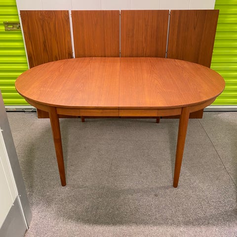 Lækker retro spisebord af taek, med hollandsk udtræk fra 1960'erne. H. 73 L. 94/126 B. 68 cm. Fremstår i super stand. Evt kan lev aftales.