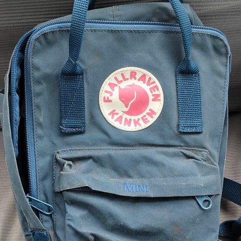 Fjällräven Kånken rygsæk i blå farve. Klassisk firkantet model med bærehanke foroven og justerbare skulderstropper. Tasken har et stort hovedrum med lynlås, frontlomme med lynlås samt sidelommer. Velegnet til hverdag, skole eller fritid.