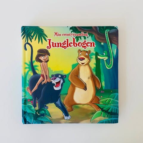 Disney Junglebogen børnebog med hård omslag. Bogen er på dansk og illustreret med farvetegninger fra historien om Mowgli, Baloo, Bagheera og de andre figurer fra junglen. Velegnet som højtlæsningsbog eller selvlæsning for børn afhængigt af læseniveau. Trykt på Wangels Forlag med klassisk Disney-inspireret layout og illustrationer på hver side.