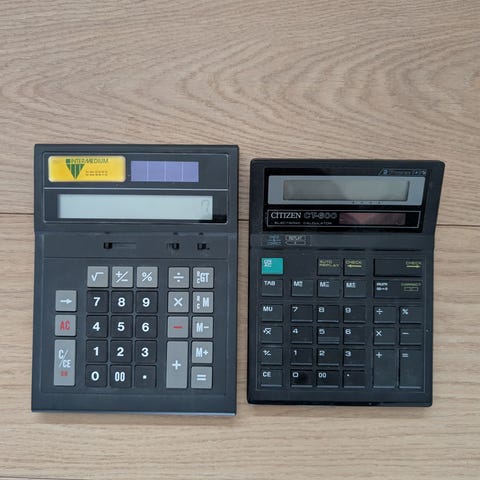 Retro lommeregner med original brugsanvisning.
